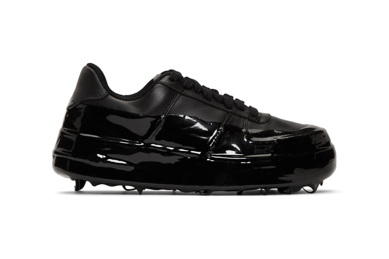 Guillermo Andrade’s tantalizing imprint 424 has returned with a unique pair of rubber-dipped black 42Force sneakers. Offered up in a low-top, leather-based silhouette, the new sneaker features a tonal rubber-dipped effect that engorges the majority of the sneaker, providing a unique “drip” effect on the outsole. The lace-up closure is similarly offered up in a tonal black colorway, with a logo-embossed patch marking the tongue. Finishing off the sneaker is a padded collar with mesh lining.