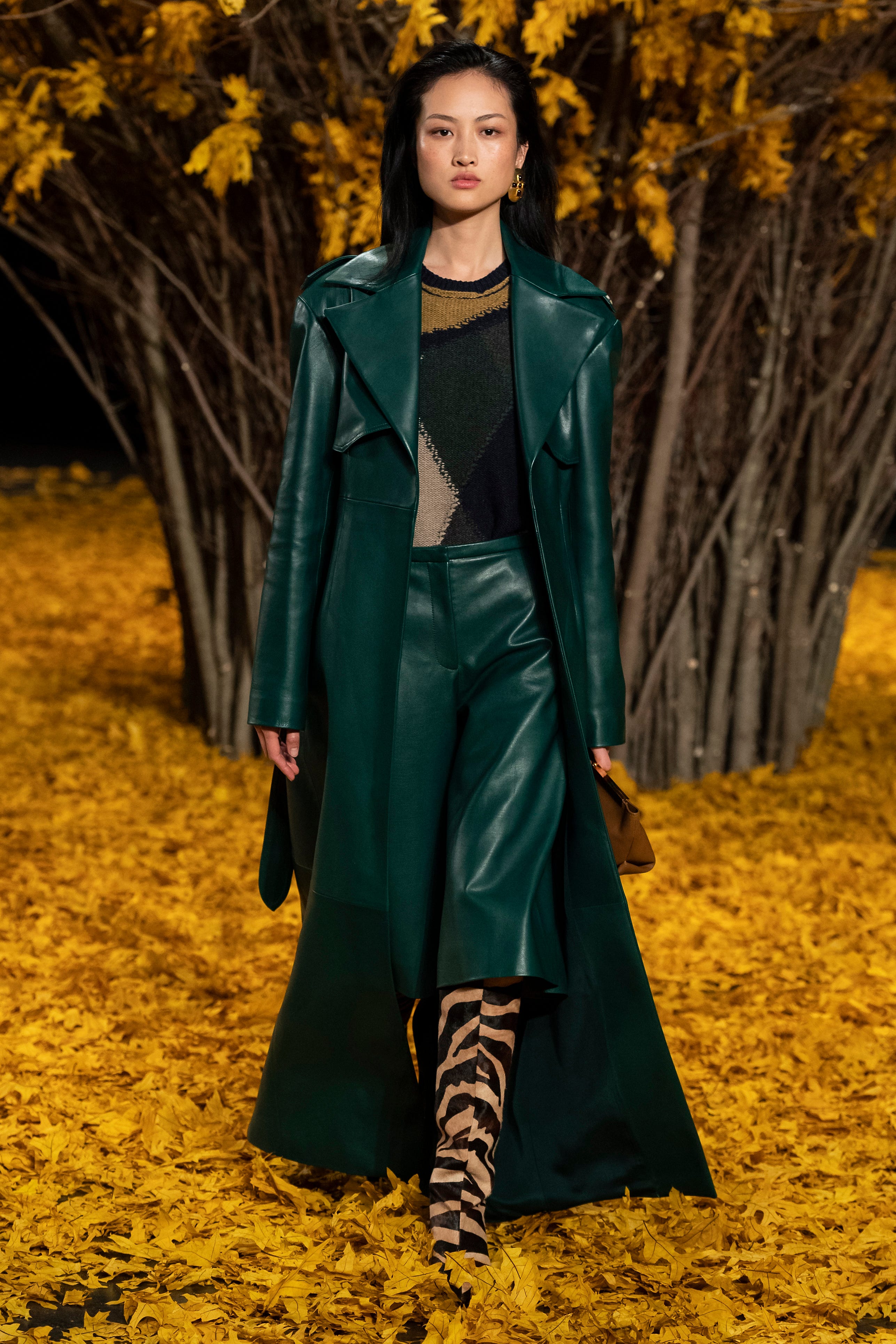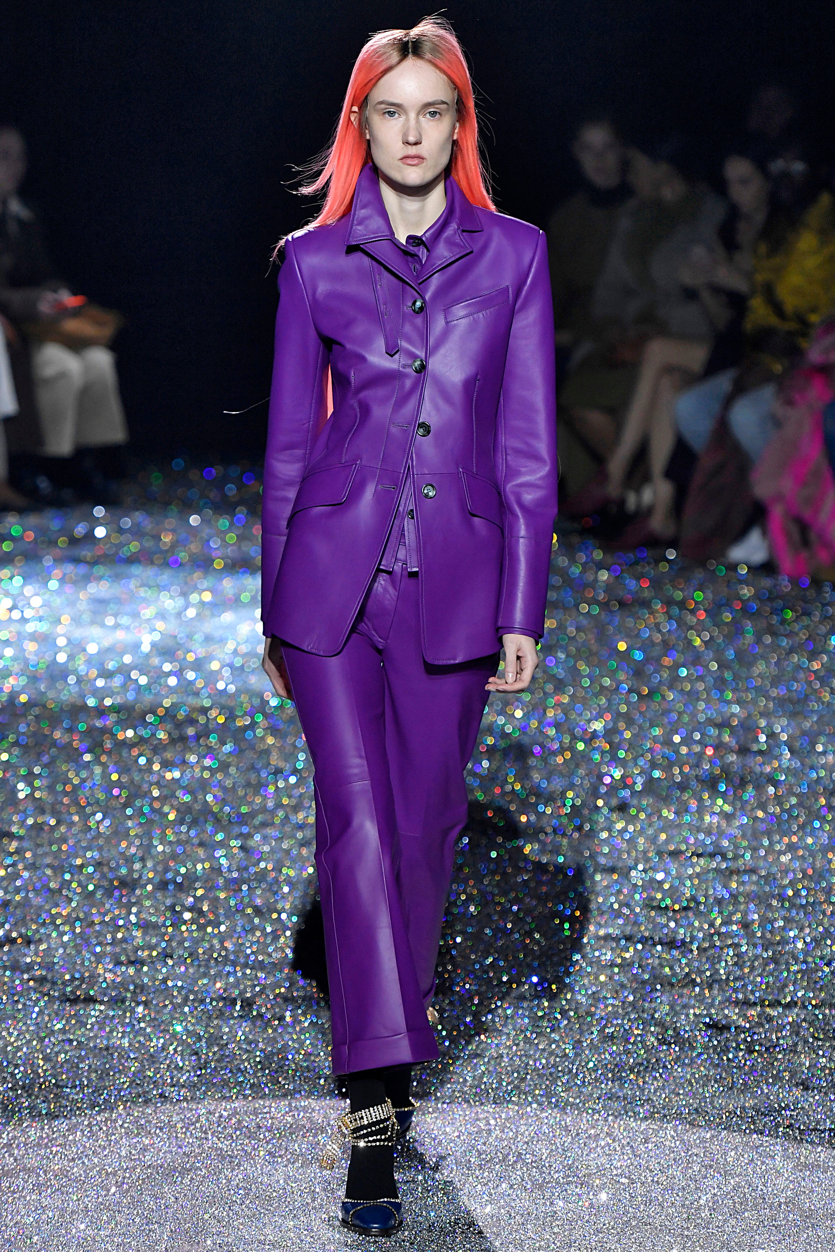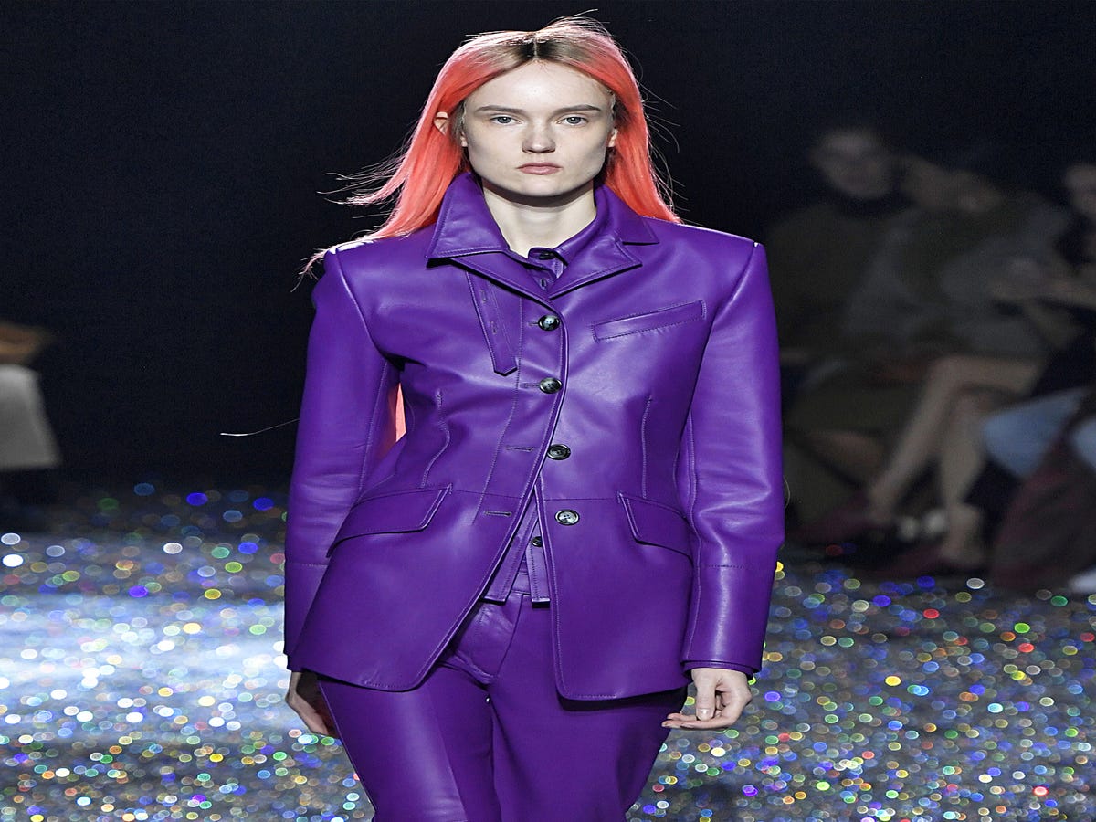 Neutral leathers on the runway are the consistent, friendly face we’re always overjoyed to see. But the dependable material is getting a colorful upgrade and we’re open to trying Fanta grape purps, forest green and much more.
