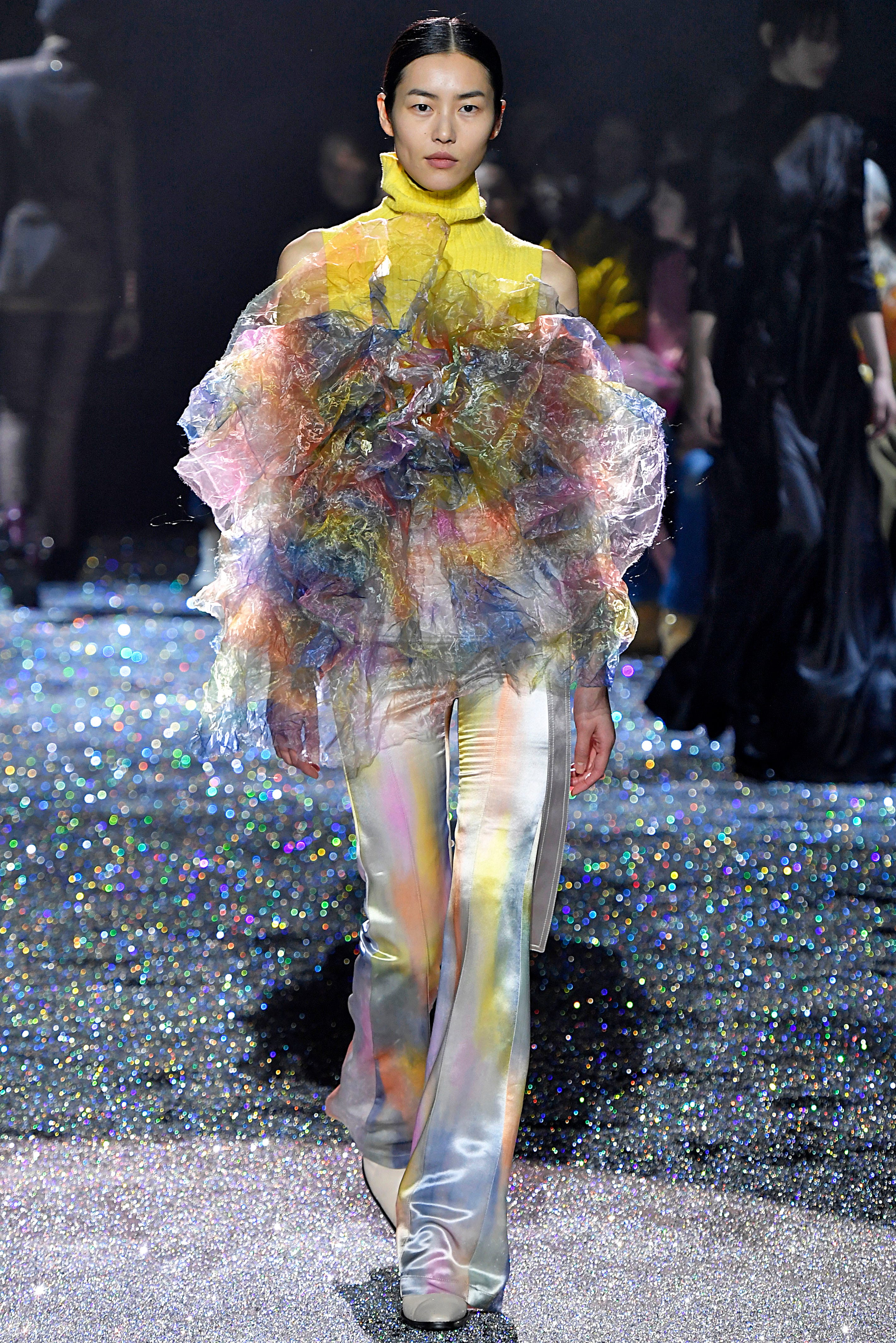 Your loofah made the great escape from your bathroom and found its way to Fashion Week! We can’t wait to dress up as a big ol’ puff, either through layers of mille-feuille, tulle, organza or a statement ruffle.