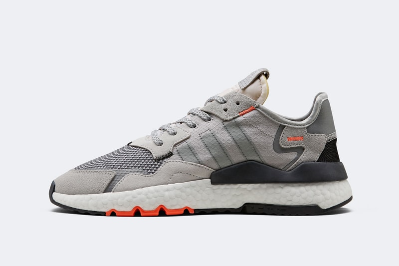 The adidas Originals Nite Jogger in "Multi-Solid Grey and Solar Orange" is available Thursday, April 11 on adidas.com and at adidas stores worldwide for $130 USD.