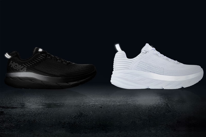 HOKA ONE ONE releases new takes on its CLIFTON 5 and BONDI 6 running shoes. The two models were upgraded with the idea of running in more "urban" settings during the night — giving both silhouettes more simple and tonal colorways with hits of reflective 3M.