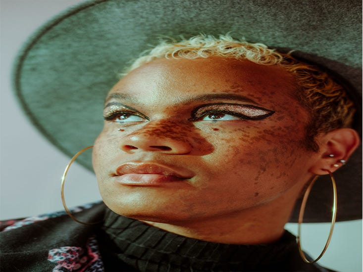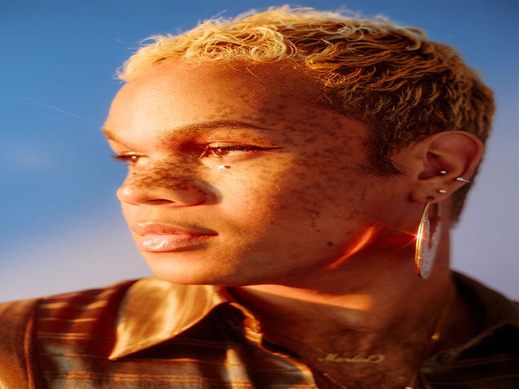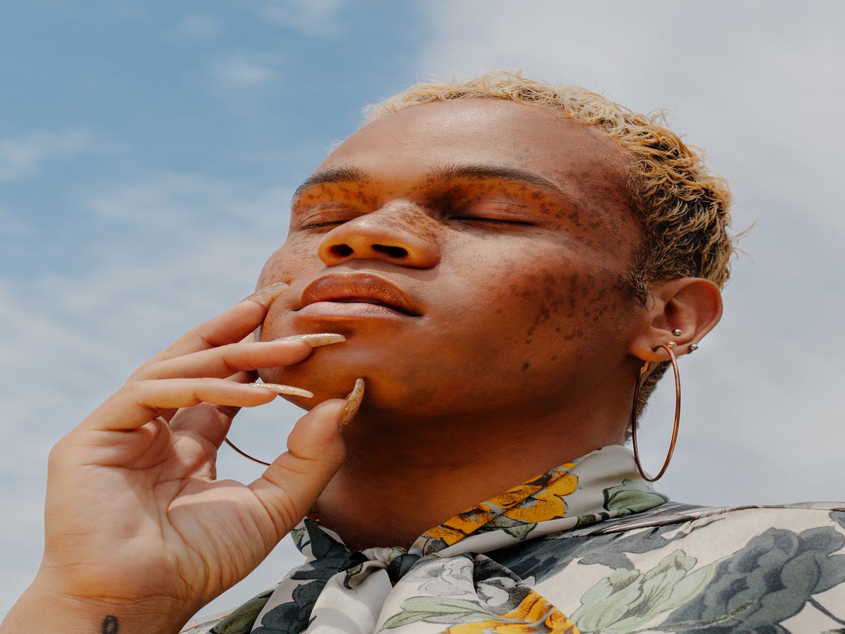 At the time, my biggest influences style-wise were Erykah Badu and Zoë Kravitz, who have freckles. That was the look that I wanted. I was like, Let me try that out, and it just stuck. They’ve been there for four years now. A lot of people don’t know my freckles are fake, but I never lie. I don’t know if this is related to being a brown and queer person, but a lot of people ask to touch them. And I’m like, ‘No, don’t touch my face.’