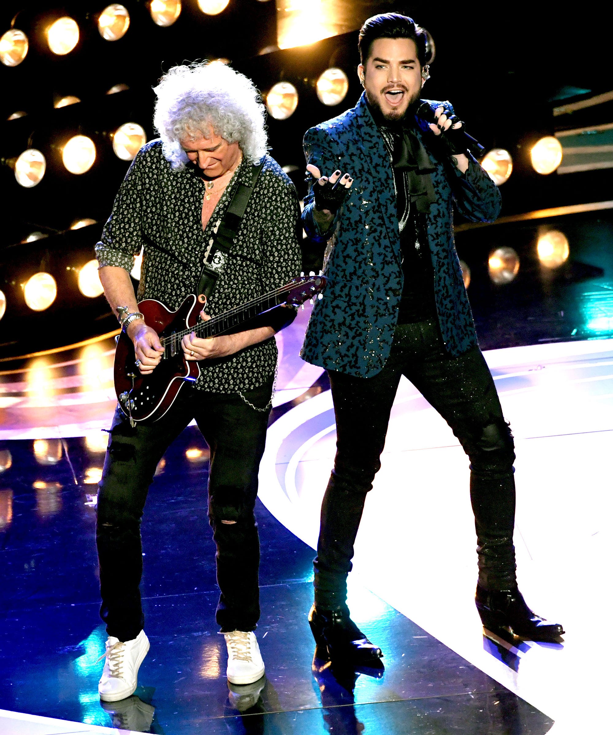 Without an opening number from the host, an extra musical number was added: Queen, featuring Adam Lambert, who joined the band as lead vocalist in 2011. Since they were the first people to hit the stage, the band was backstage early, although Grayson didn’t need to do much when it came to touching up Lambert’s look.